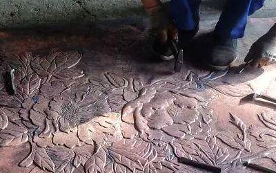鍛造(咱們這兒特指鍛銅)——嘿!這可是體力活加技術(shù)活!拿銅板當畫布,錘子當畫筆,全靠師傅一錘子一錘子敲打出來的!尤其是浮雕、壁畫這類講究深淺效果的,這手藝絕了!純手工的精細活兒。